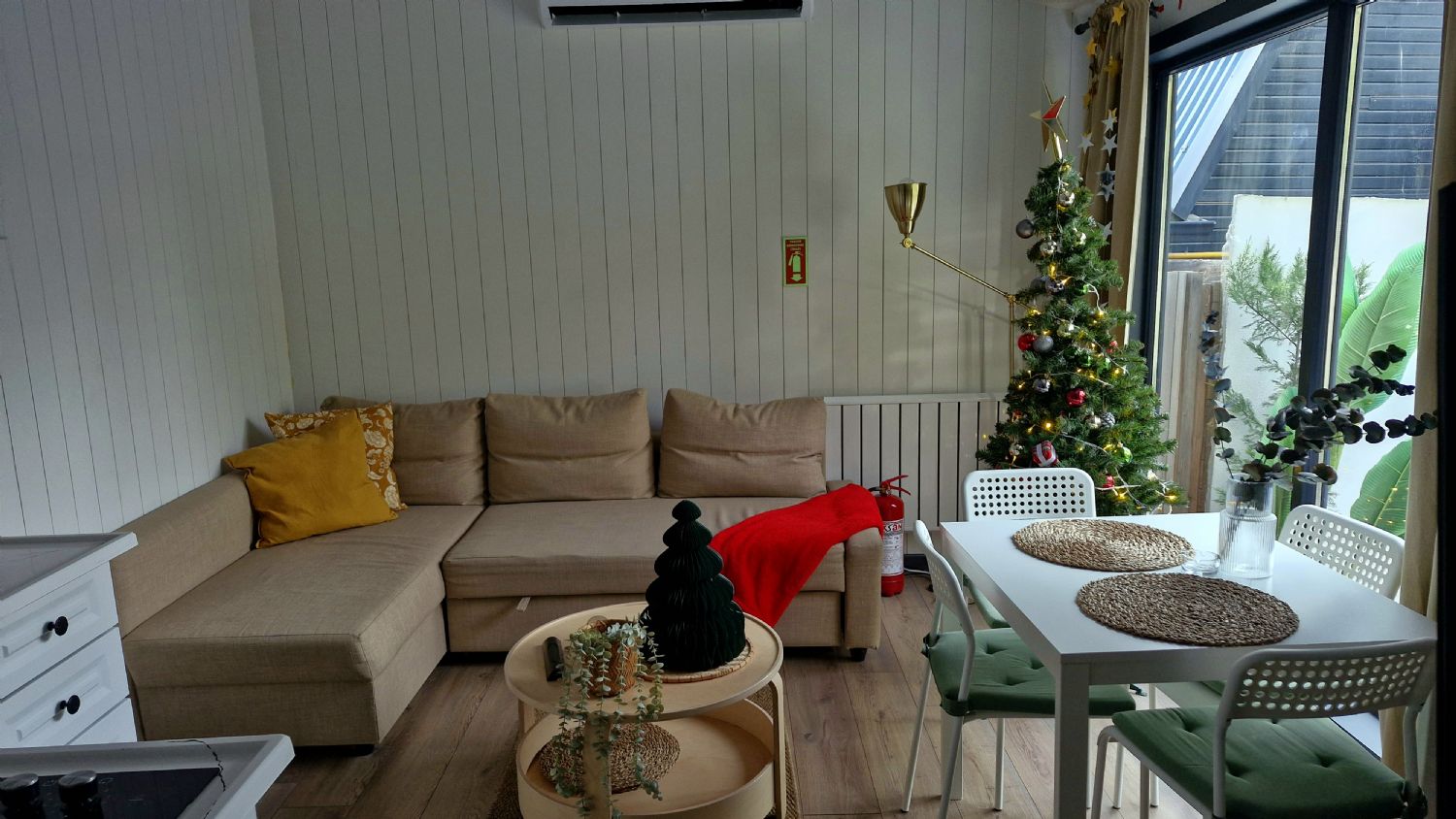 30m² kapalı alana sahip olan 1+1 konseptli evimiz maksimum 4 kişi olarak konaklamaya uygundur. Yatak odasında çift kişilik yatak ve salonda köşe koltuk mevcuttur. Köşe koltuk açılarak çift kişilik yatak olmaktadır.